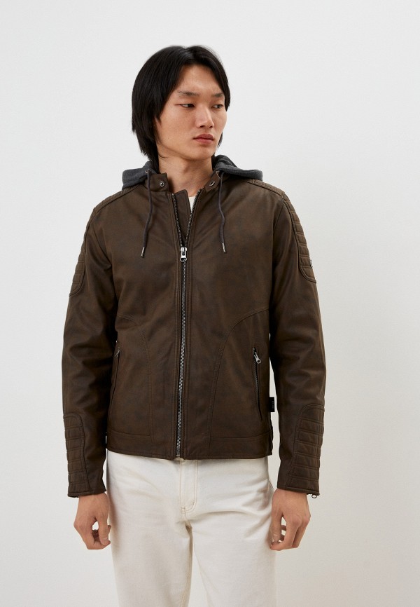 Куртка кожаная Indicode Jeans. Цвет: коричневый. Сезон: Осень-зима 2022/2023.