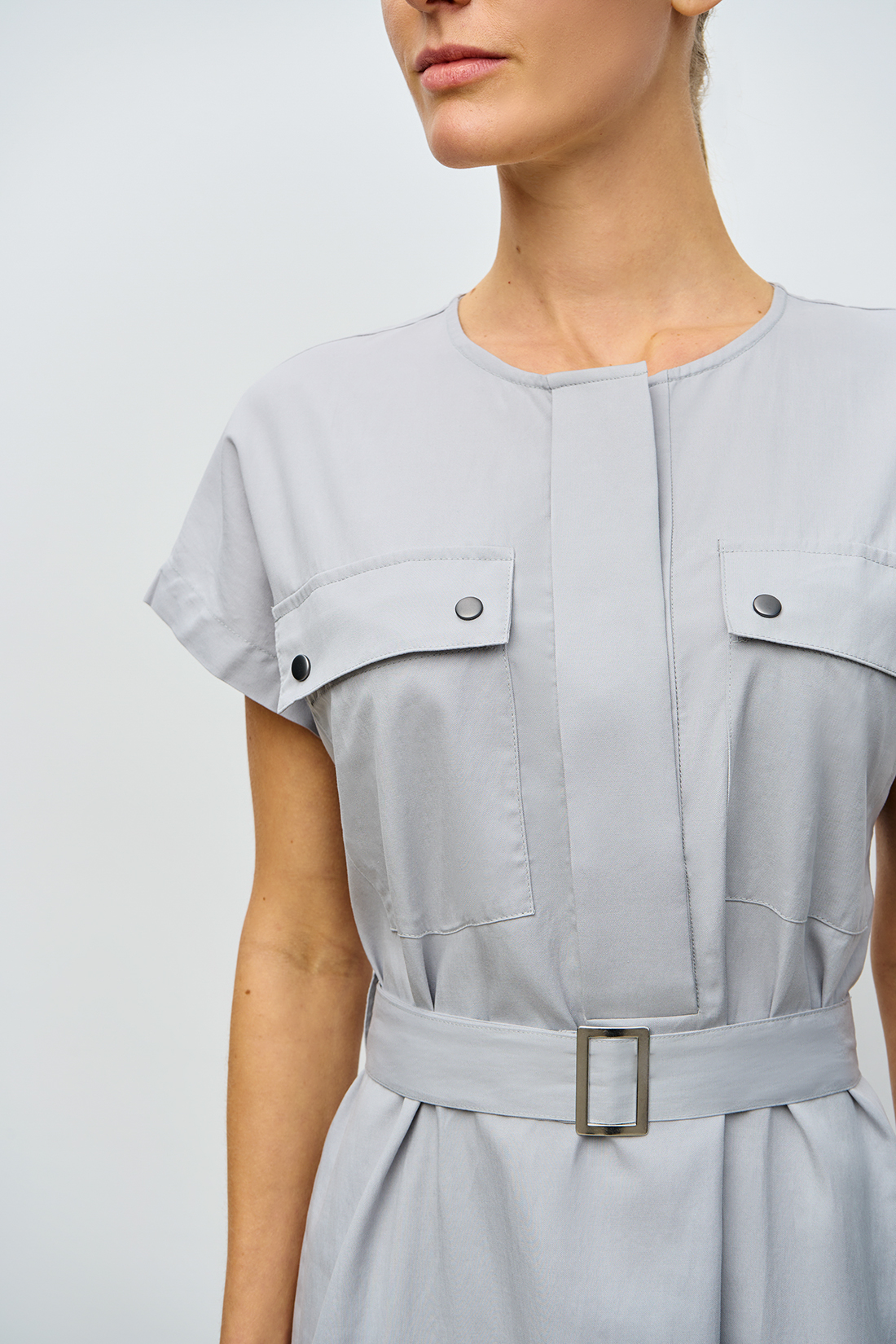 Городские джунгли зовут! Покорите их при помощи эффектного платья в сафари-стиле. Модель позволит вам оставаться элегантной даже в жаркую погоду. Рекомендуем сочетать платье с кедами или сандалиями на плоском ходу.Модное платье выполнено из дышащей ткани с структурным переплетением. Полностью натуральный материал обладает дышащим и гипоаллергенным эффектом, вискоза делает его шелковистым и пластичным, а хлопок - мягким и простым в уходе. Обратите внимание: натуральные волокна могут дать усадку при стирке, поэтому стирайте платье в прохладной воде.Платье имеет прямой крой, приталенный силуэт создаётся при помощи пояса с металлической пряжкой. Спереди расположена потайная застёжка на пуговицы. По бокам имеются карманы.
