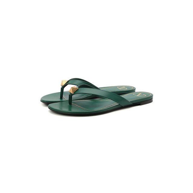 Темно-зеленые шлепанцы Upstud вошли в весенне-летнюю коллекцию бренда, основанного Валентино Гаравани. Для изготовления модели мастера марки использовали гладкую матовую кожу. Пьерпаоло Пиччоли украсил Y-образные ремешки, как у вьетнамок, крупным шипом-пирамидой с рельефным узором и платиновым напылением.