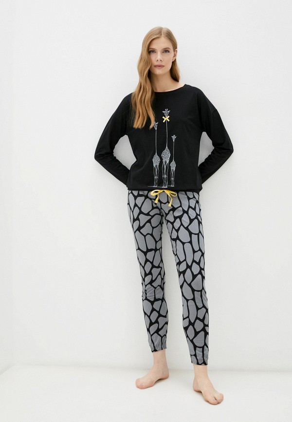 Костюм домашний Vienetta. Цвет: черный, серый. Сезон: Осень-зима 2021/2022.