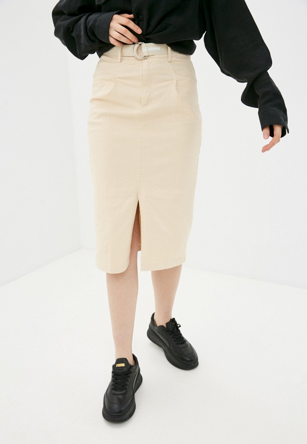 Юбка джинсовая Nerouge. Цвет: бежевый. Сезон: Весна-лето 2021.